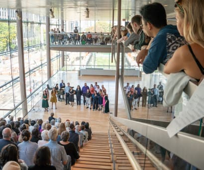 This well-designed, contemporary space pairs a distinctive glass façade overlooking University Avenue, with a beautiful beechwood lattice veil backdrop.